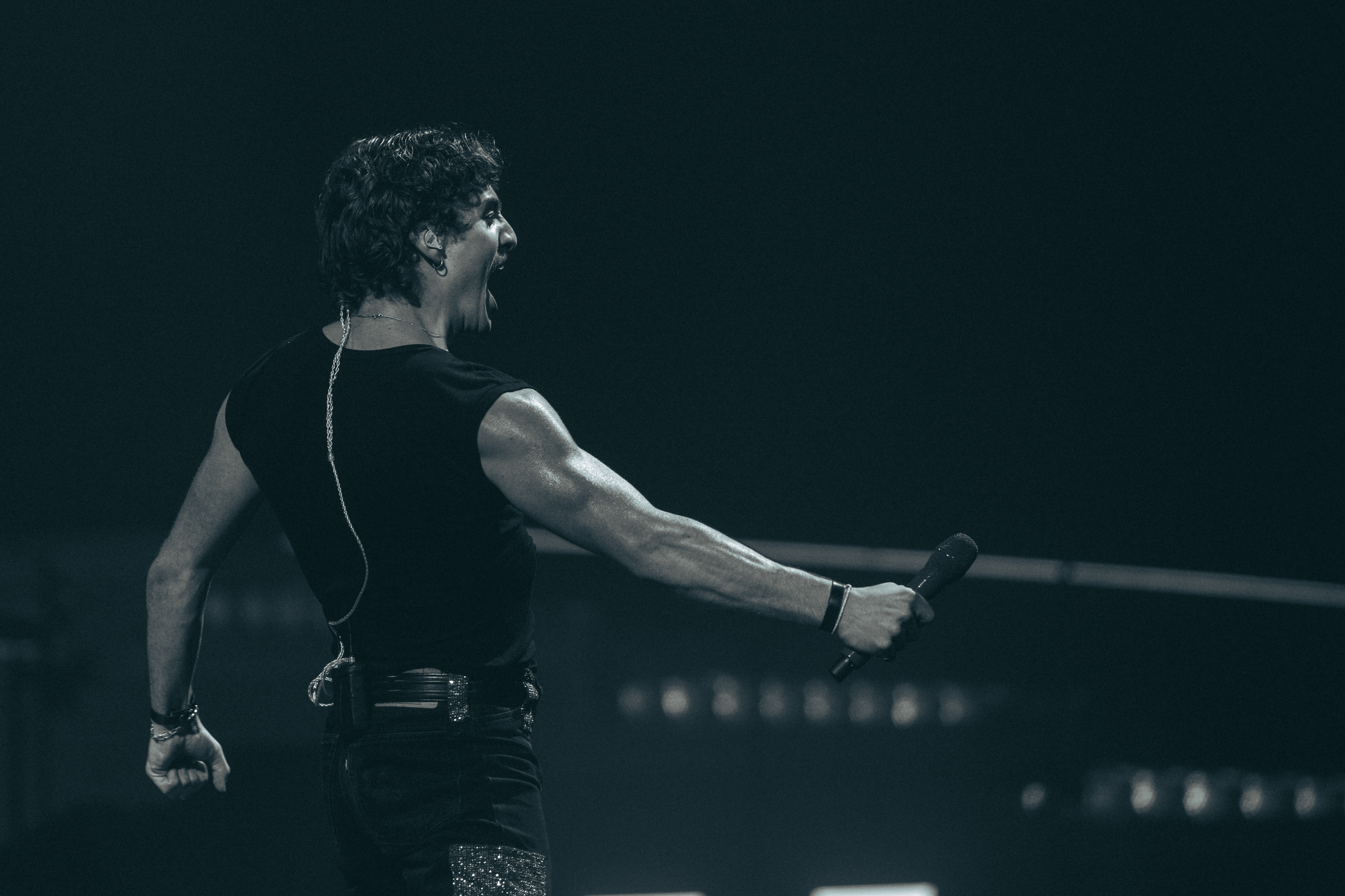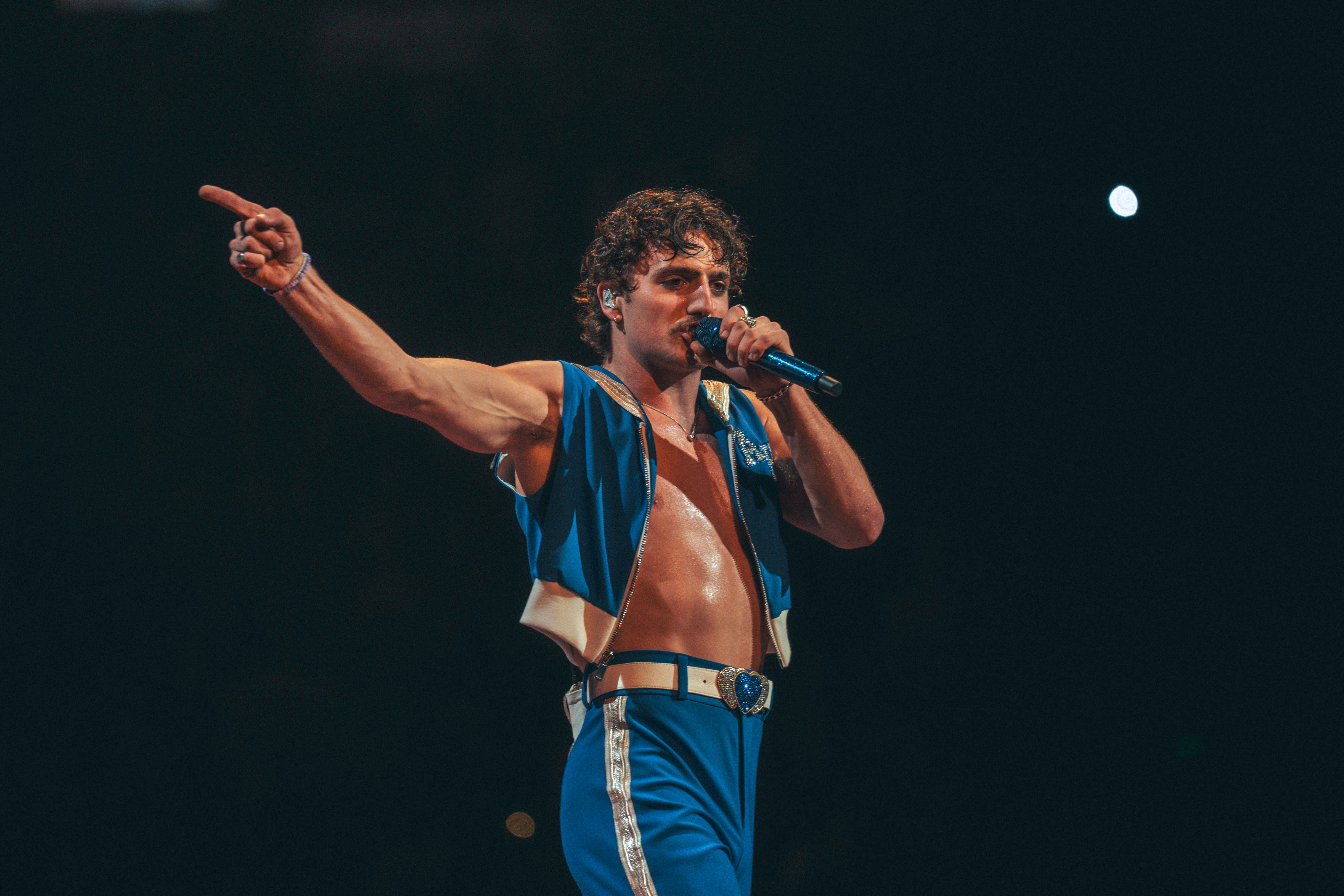 And then Benson Boone. Oh, where do I even start? From the instant he emerged, the arena erupted into an almost tangible wave of exhilaration. The guy is a storm on stage—alive, unstoppable, and completely magnetic. He ran across that vast stage like it was his playground, singing flawlessly, dancing with abandon, flipping—because of course it’s not a Benson show without flips—and still somehow managing to make it all feel effortless, like he was born to do this (spoiler alert: he is).