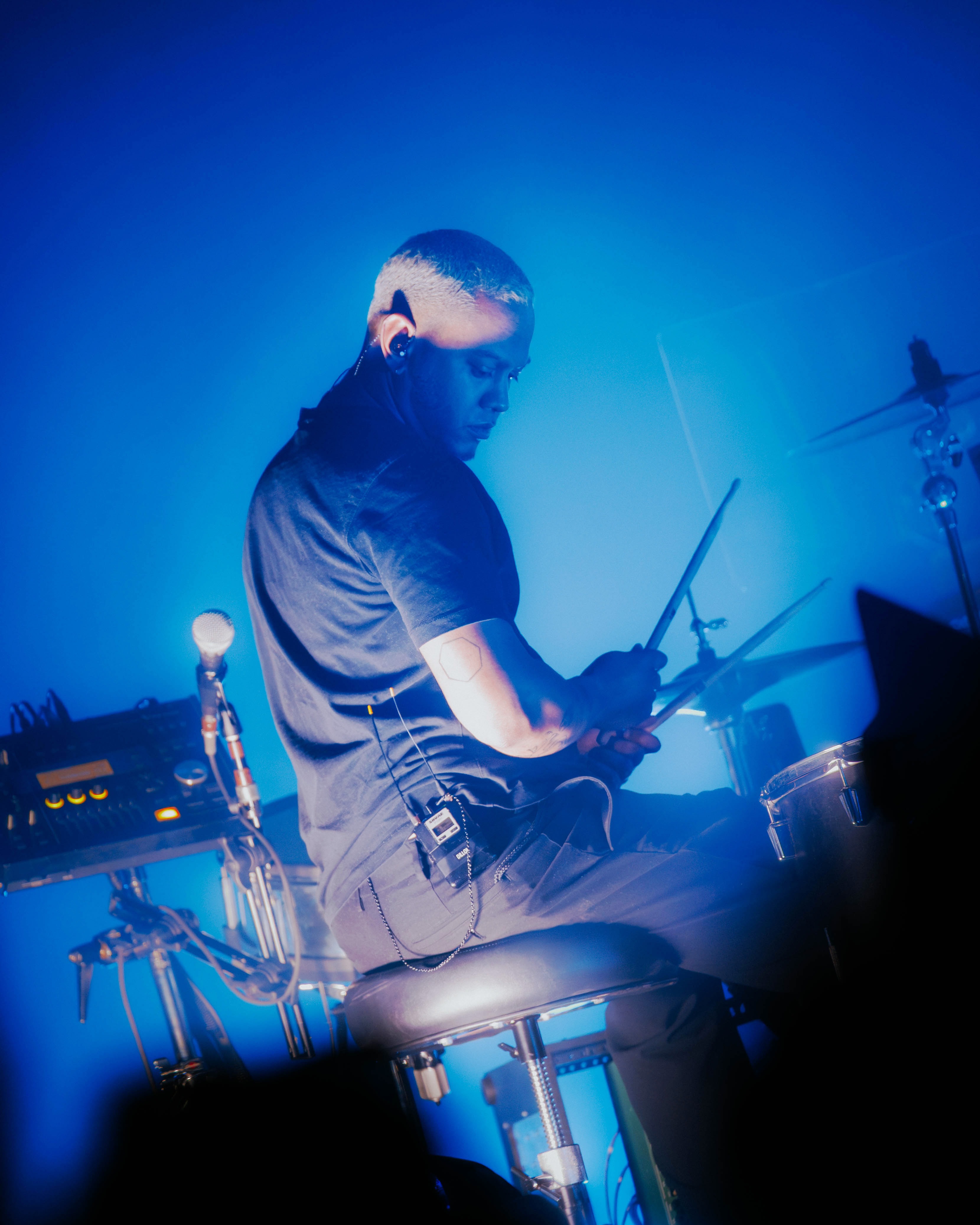 The evening opened with a set from Alex English, whose understated approach fit in well with the overall aesthetic. Their performance emphasized mood over volume, pairing soft vocals with minimal electronic textures that filled the room without overwhelming it. English’s set established a contemplative baseline for the night, and proved a fitting prelude to the more expansive, multilayered performance which followed.