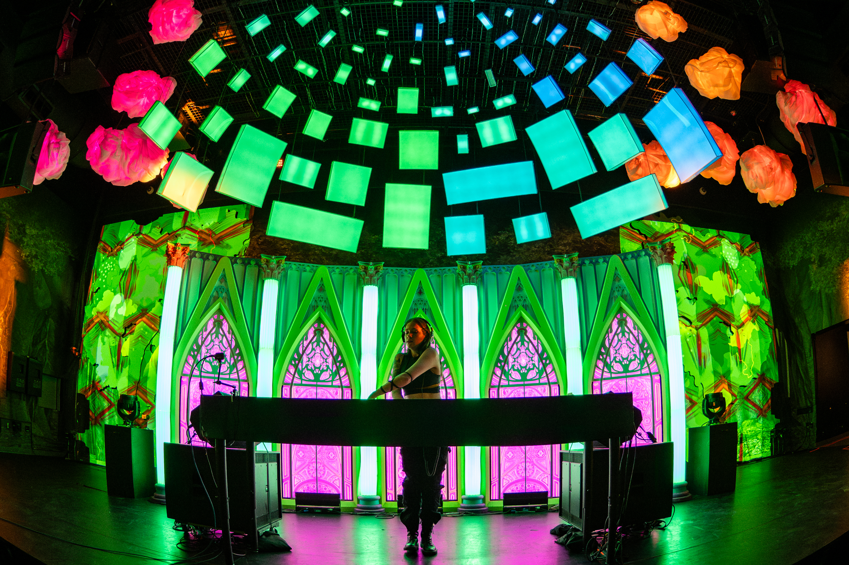 Chet Porter elevated the vibe with a euphoric blend of melodic house and progressive EDM, his uplifting set aligning perfectly with Meow Wolf’s surreal visuals. Following Chet, Elohim delivered a powerful performance full of synth-pop intensity and emotional edge, tying together the festival’s genre-bending arc with fearless creativity and crowd command.