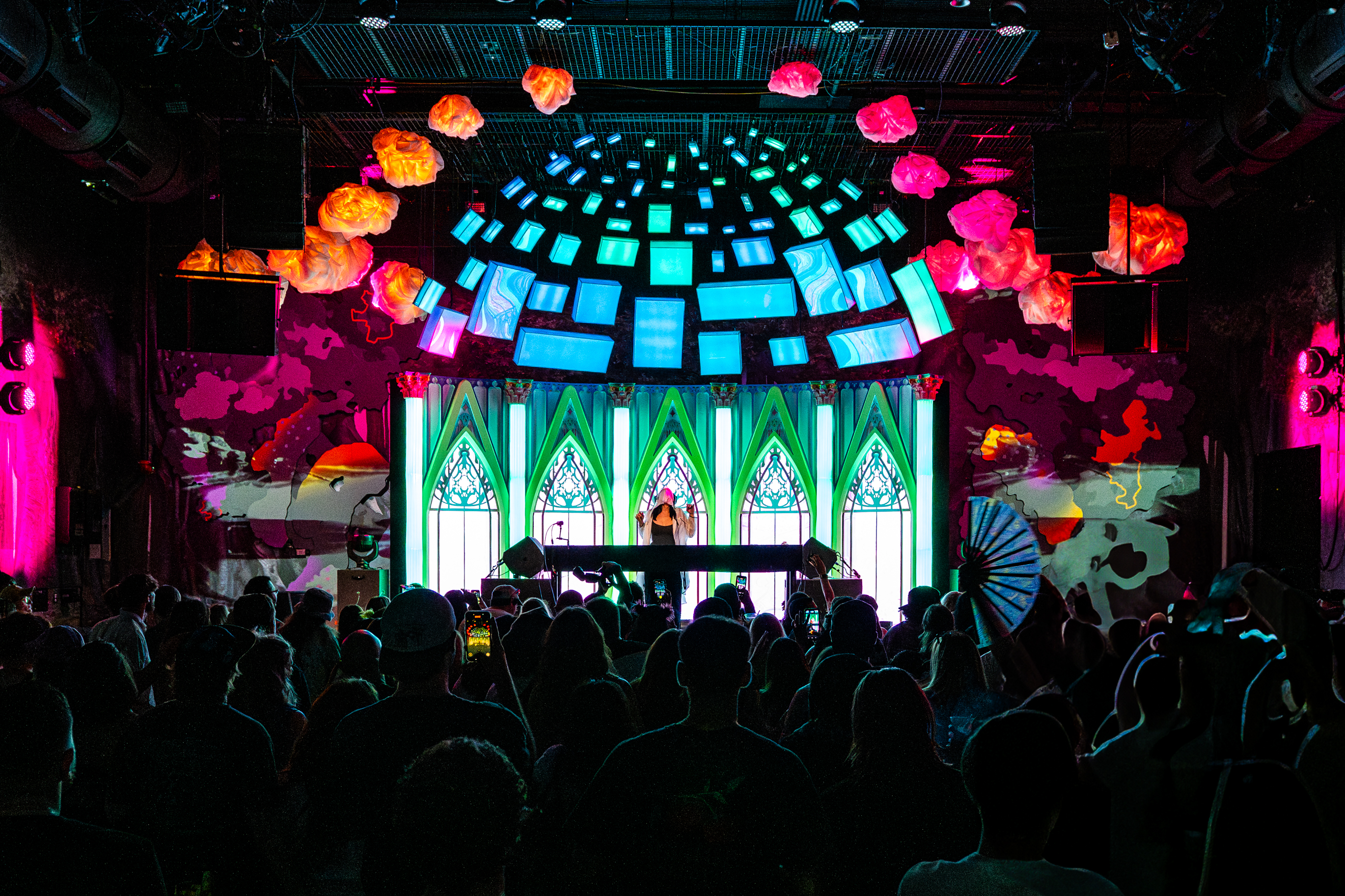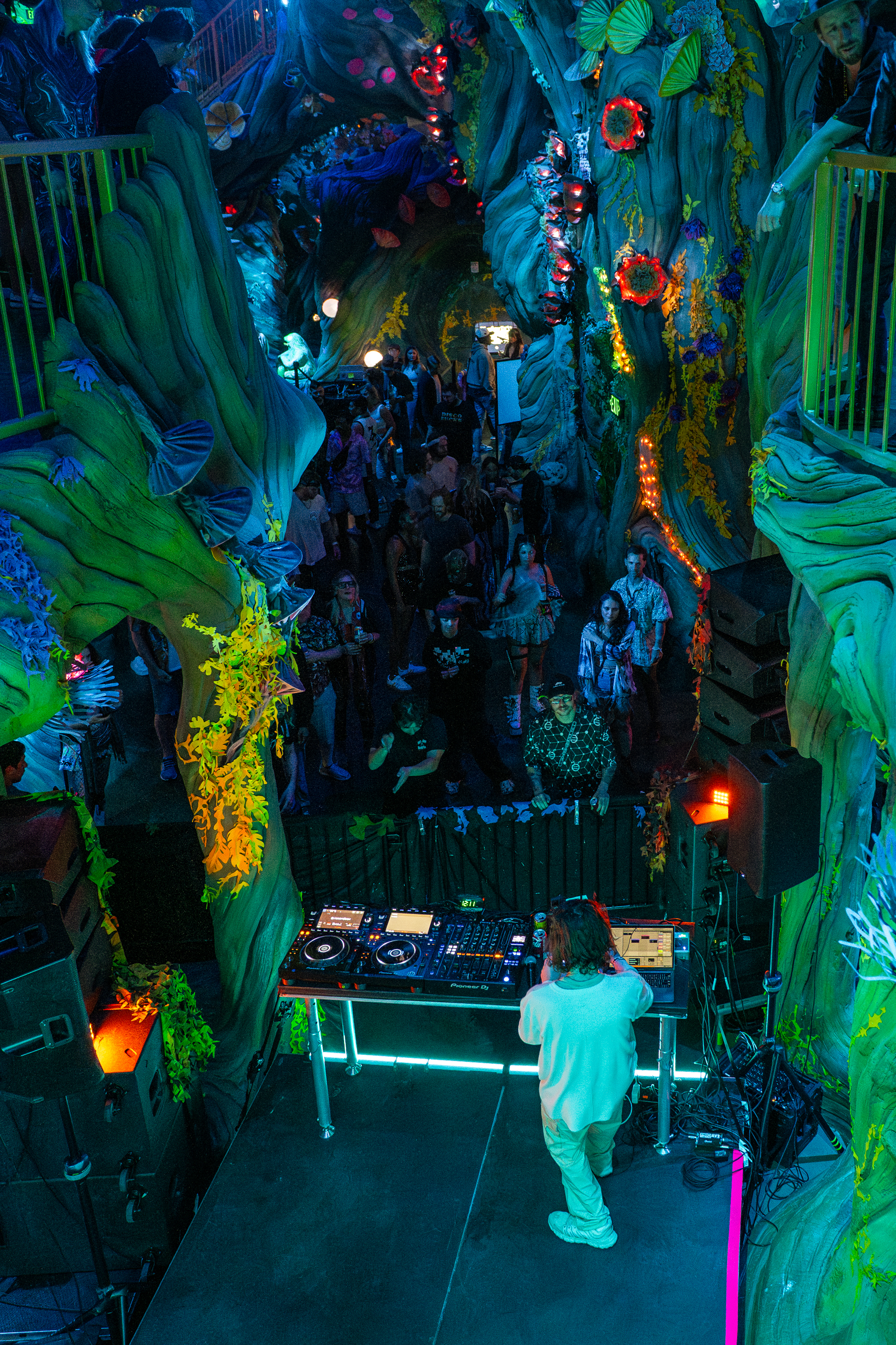 Danceportation brought an unforgettable fusion of sound, art, and communal energy. Inside Meow Wolf’s labyrinthine Wonderland, the immersive environment became a playground of lights, colors, and textures, each installation pulsing in sync with the lineup’s diverse performances. The atmosphere was electric, yet intimate—strangers found themselves dancing side by side in unexpected corners, surrounded by interactive art and surreal visuals that transformed every hallway into a stage.