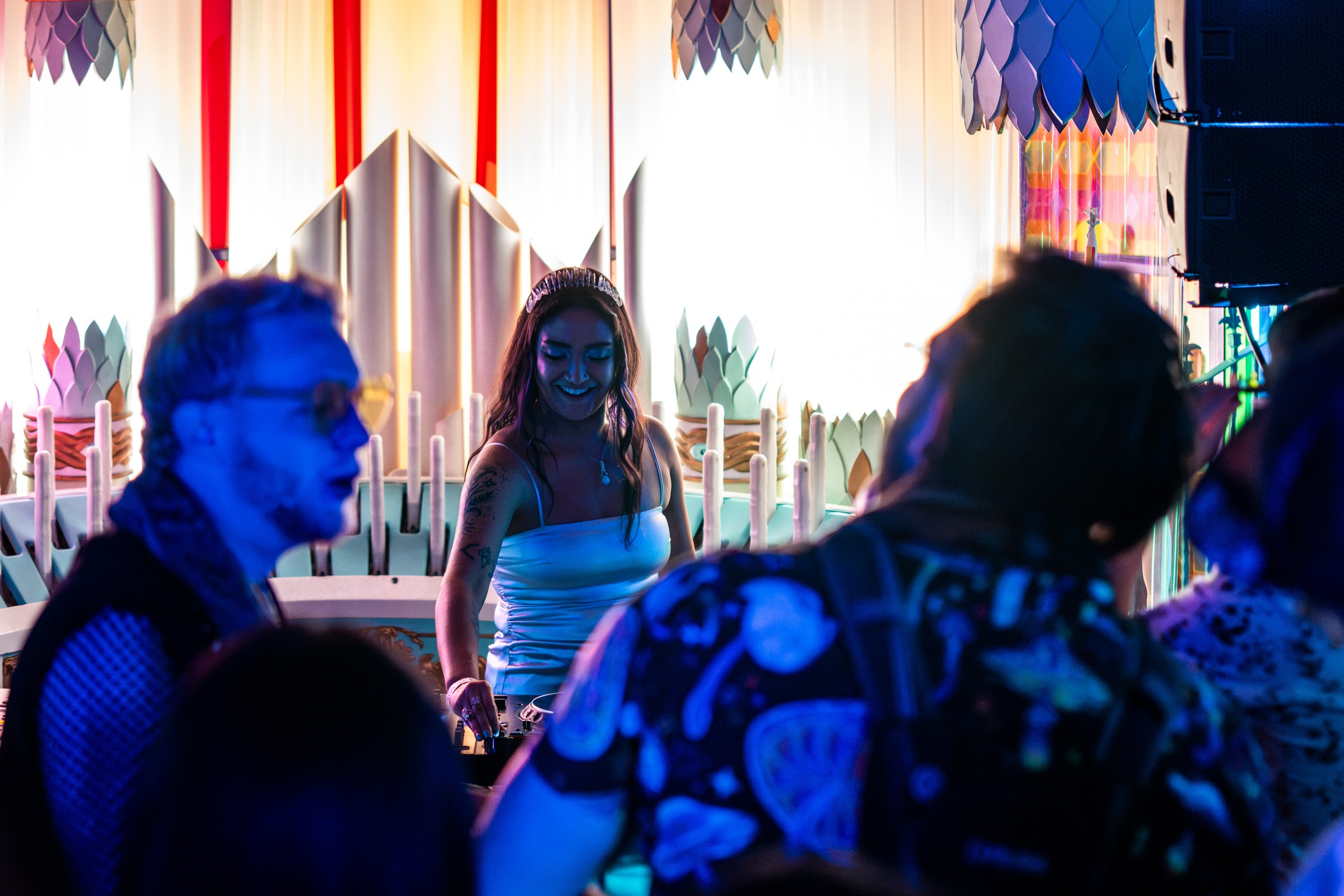 Lizzy Jane brought her signature blend of cinematic pop and lush electronic textures, crafting a vivid sonic journey that resonated throughout the venue. As the day progressed, N2N leaned into groovy indie-electronic rhythms, creating a vibrant bridge between mellow and dance-heavy sets. Quiet Bison plunged the crowd into a bass-driven, glitchy realm that pulsed with raw experimental energy, while Benson followed with jazzy, downtempo melodies that smoothed out the sonic edges.
