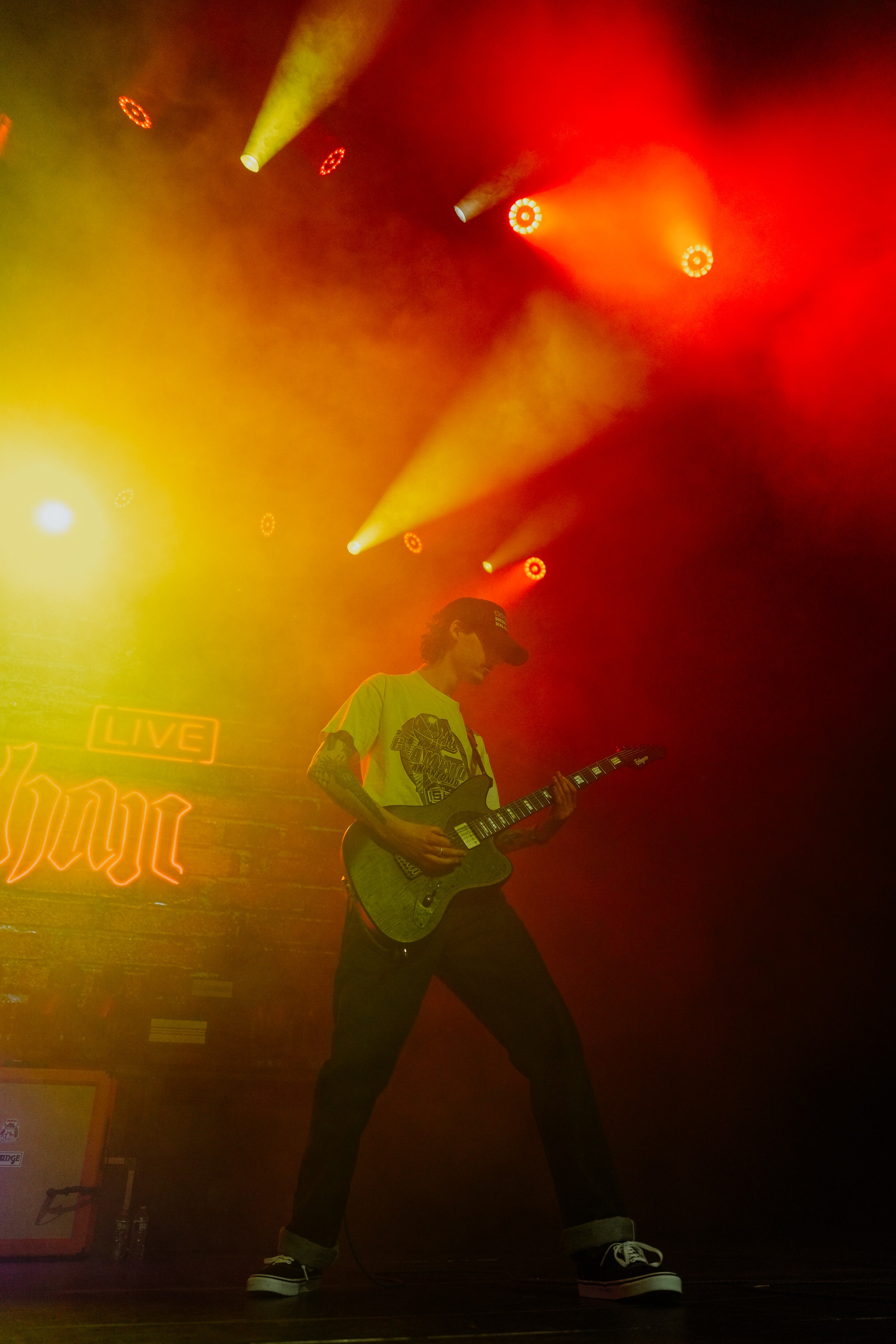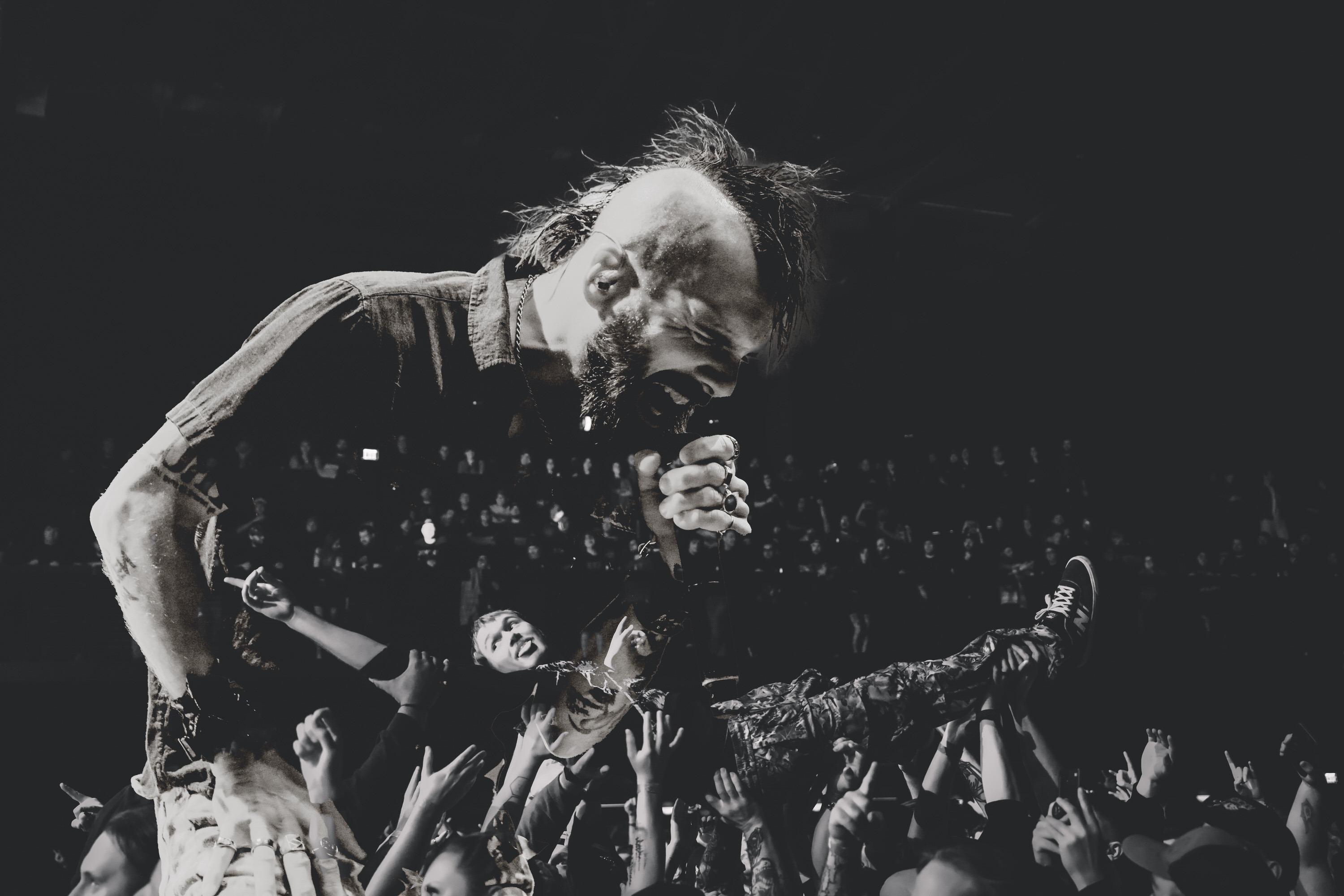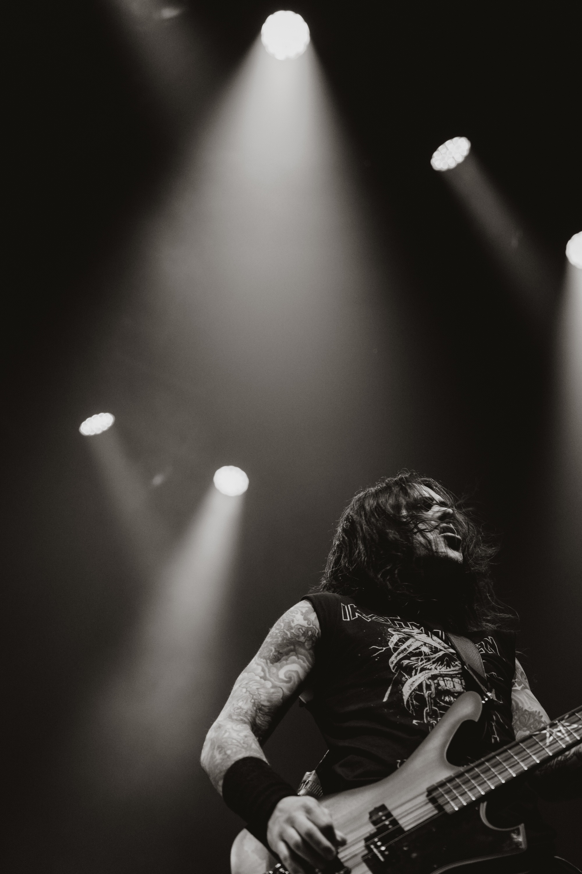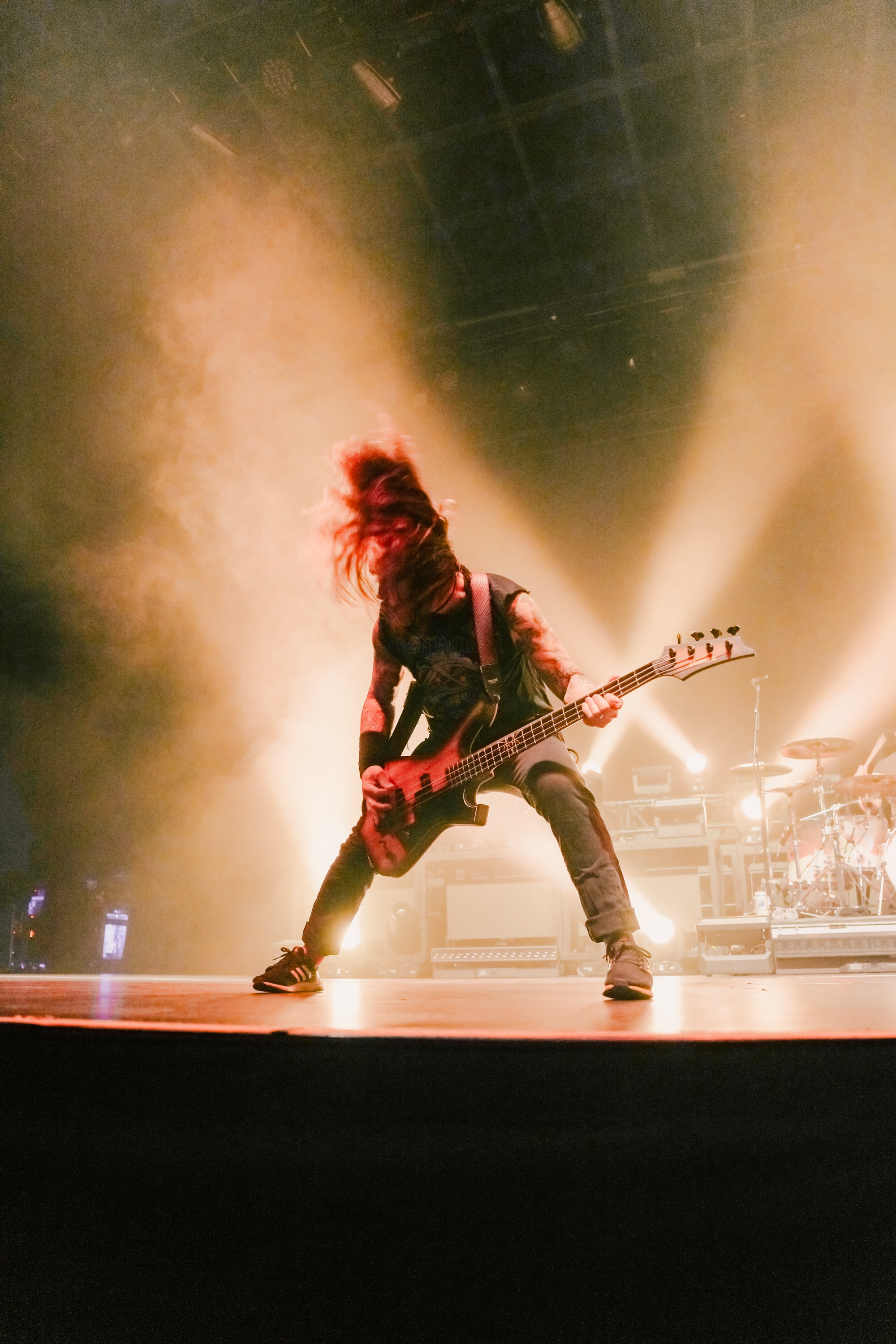 Fit for a King hit the stage with force, locking the crowd in from the first note. Heads nodded, hair whipped, and the circle pit fired up fast—a swirling pulse of energy. Right in the mix was a concertgoer in a wheelchair, fully part of the chaos; a reminder of how inclusive this space can be. I always get that flicker of nerves with pits—will it tip into aggression or become a shared release? That night, it was the latter, a perfect balance of fury and respect that set the tone for the rest of the show.