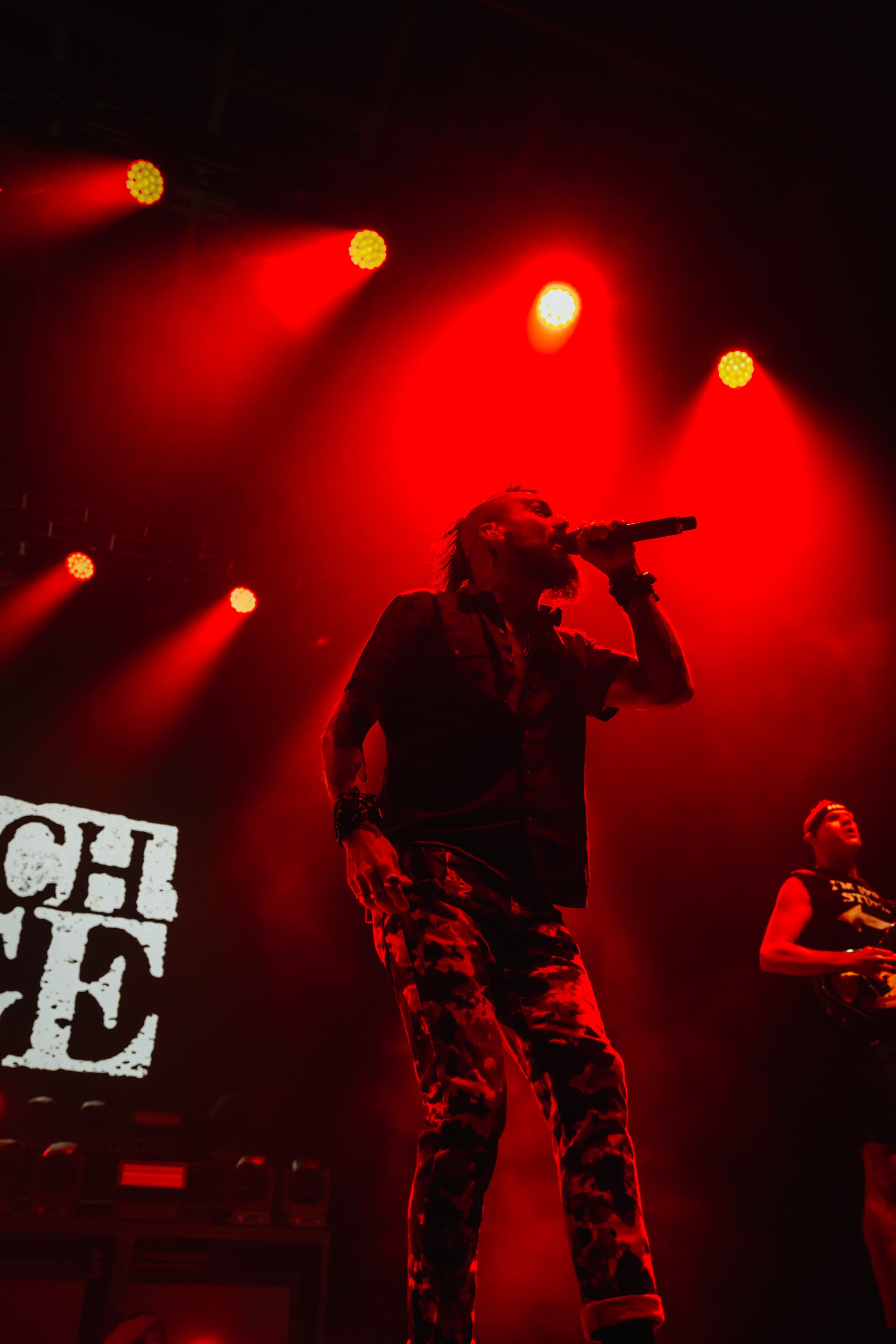 Then came Killswitch Engage. Jesse Leach had the crowd in his hands—off the stage, up to the barricade, matching every bit of energy and love the crowd gave him. Songs rolled one into the next, barely a second to breathe, with just a few pauses—one where he told us, “We’re more alike than the people who want to keep us divided,” a call to stick together that landed deep. It was one of those moments where you feel seen, like everyone’s digging deep from the same truth. The pit showed it too, holding steady even in the quieter moments, sometimes with one person standing in the center, defiant but calm, the circle never broken but cradling this space for release.