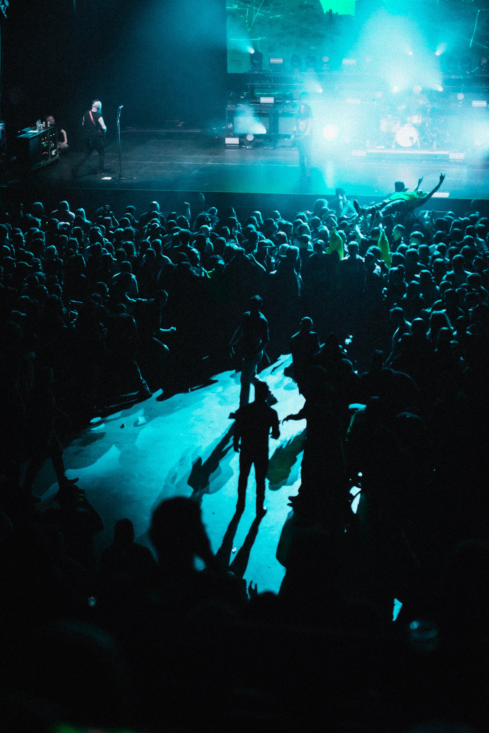 Kublai Khan TX came next and cranked the energy even higher. Matt Honeycutt’s growls dominated the room as the floor turned wild—crowd surfers flying, pits thrashing. Somewhere in the madness, a group of guys in banana suits surfed the crowd with reckless joy. Wait—was that dog barking? Their set was short, sharp, and unrelenting, leaving bodies buzzing and minds blown. So much chaos, so much energy, and as a first-timer, I was just trying to take it all in, barely processing before the next wave crashed over me, leaving me reeling long after their set ended.