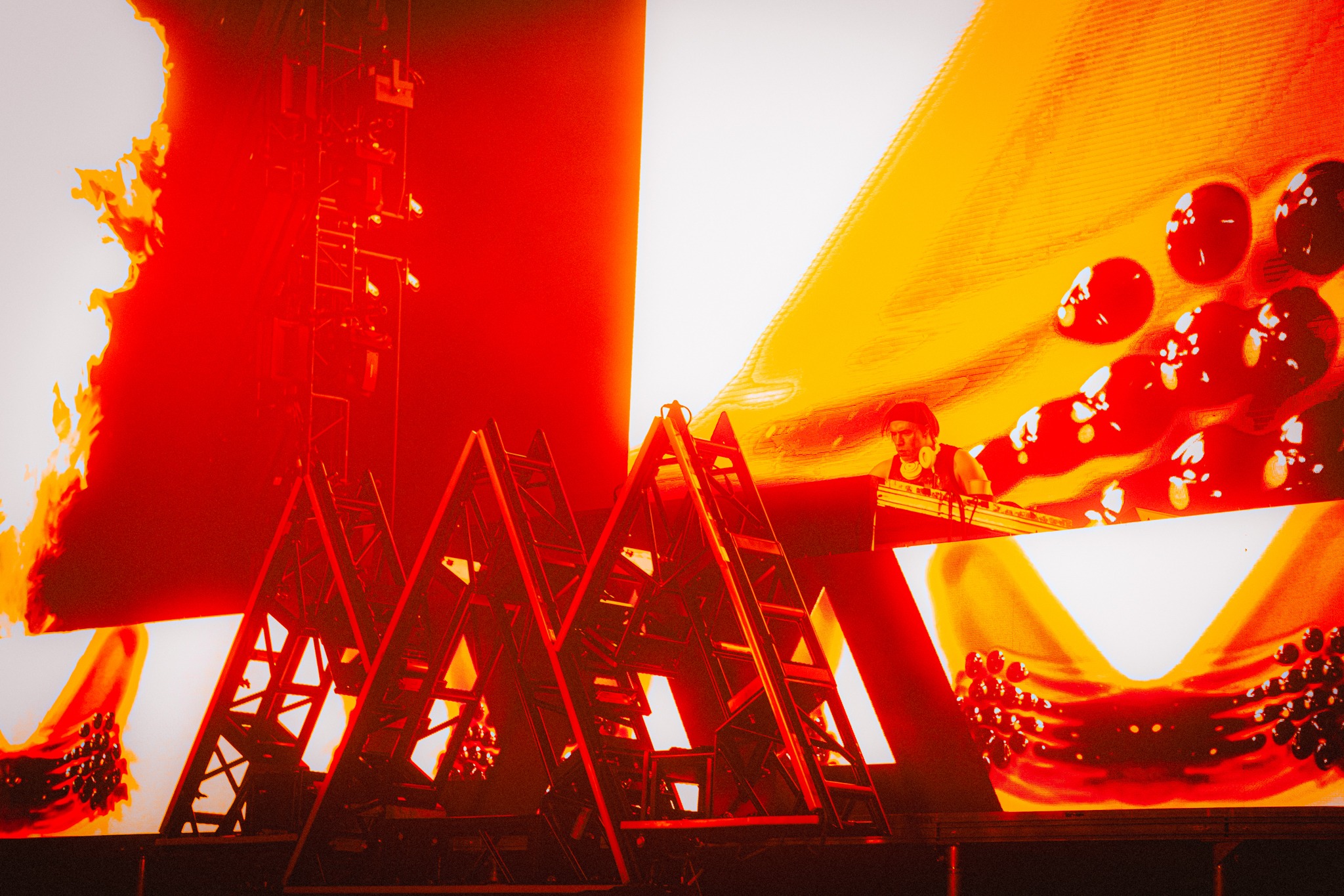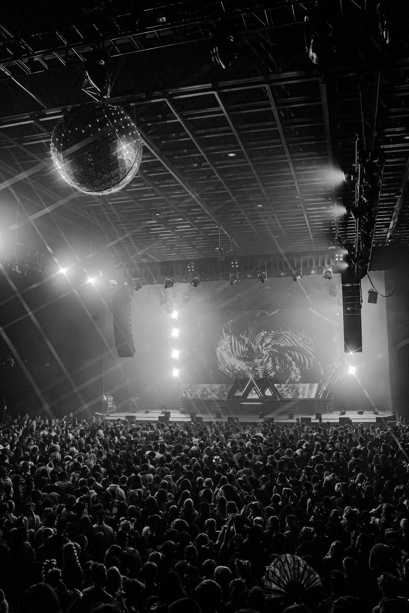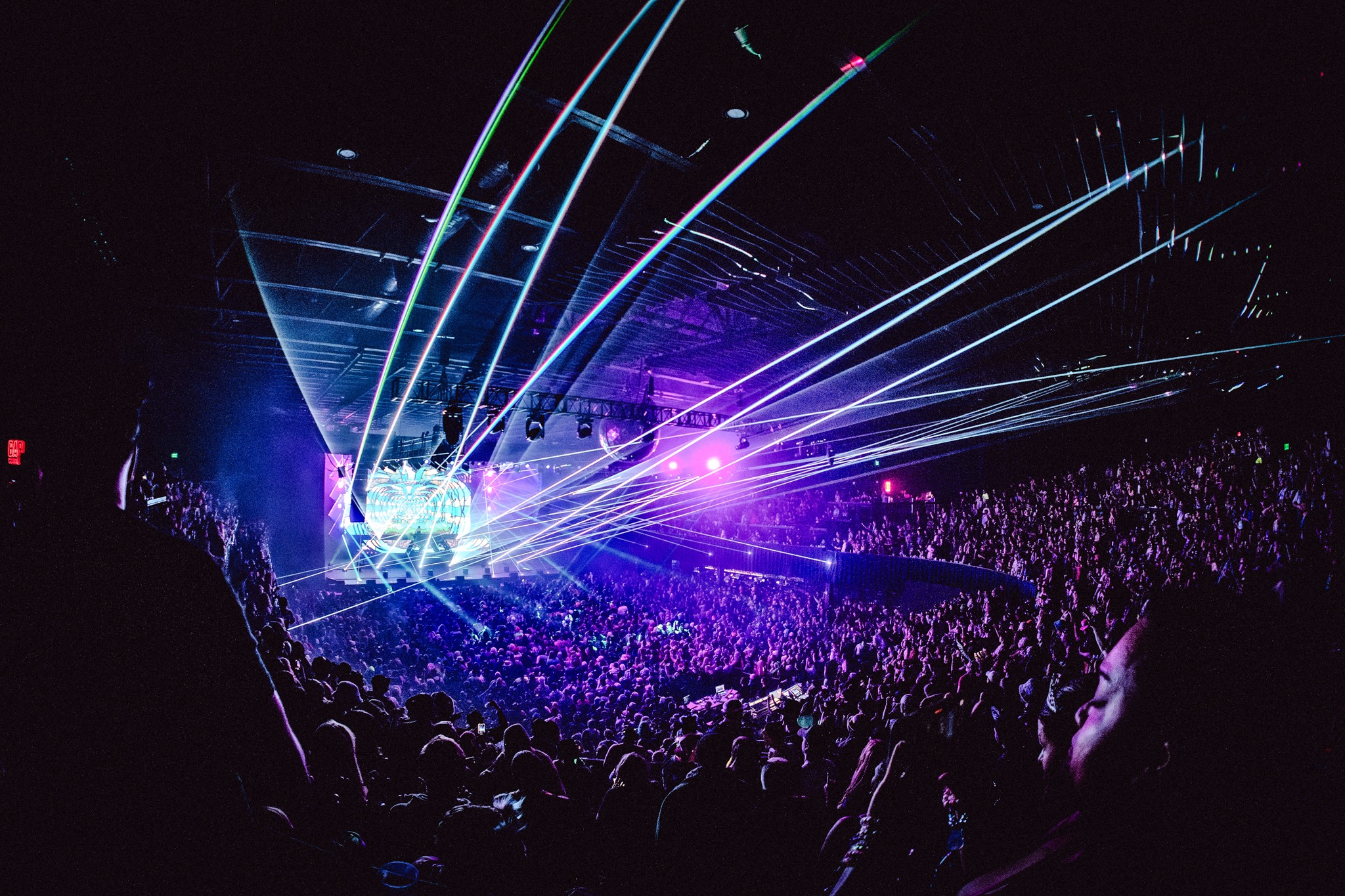 When his eight added subwoofers kicked in, the air practically shoved bodies back—rattling the ballroom and shaking us to our core. The intensity was matched by an over-the-top, meticulously crafted stage design and production. At the center: the symbol of Wakaan, Martin’s music label founded in 2015. Lasers and lights were everywhere—four full laser rigs, eight par lights suspended above the crowd, massive LED screens in front of and behind the booth—and yes, fire. Between the heat of the tracks and the literal fireballs erupting at the front of the stage, the crowd was sweating. It was absolutely sick.