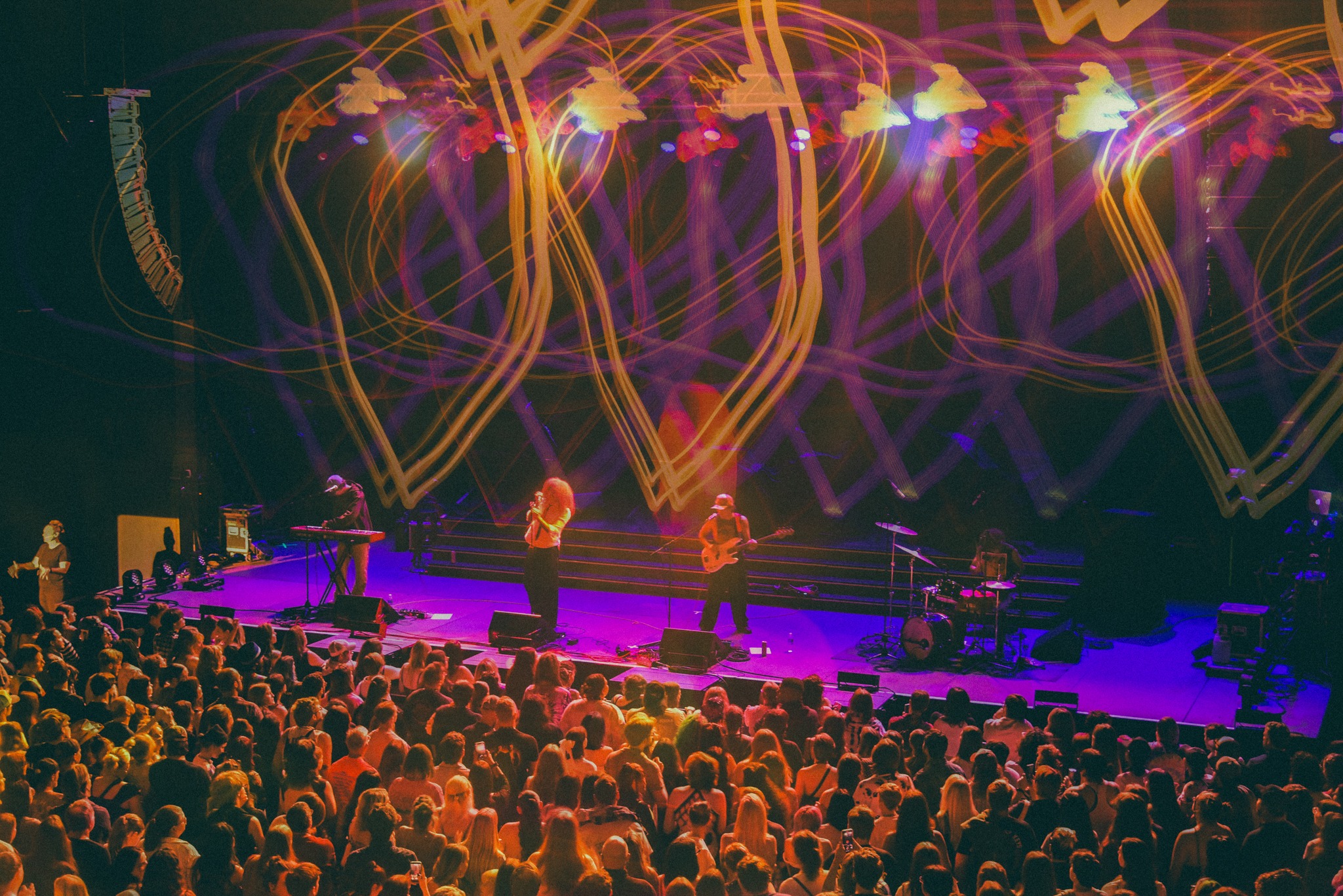 When Rainbow Kitten Surprise (RKS) arrived on stage, the crowd roared with anticipation and excitement. RKS opened their night with “LOL” from their album Love Hate Music Box. The energy in the crowd grew as the fans sang and danced to song after song. Each transition felt like a satisfying surprise as RKS jumped from album to album. The band had a set list of songs that jumped from multiple albums, but without missing a beat, the crowd sang along to each one. This really showed me the deep love and admiration RKS fans have for the band’s entire discography.