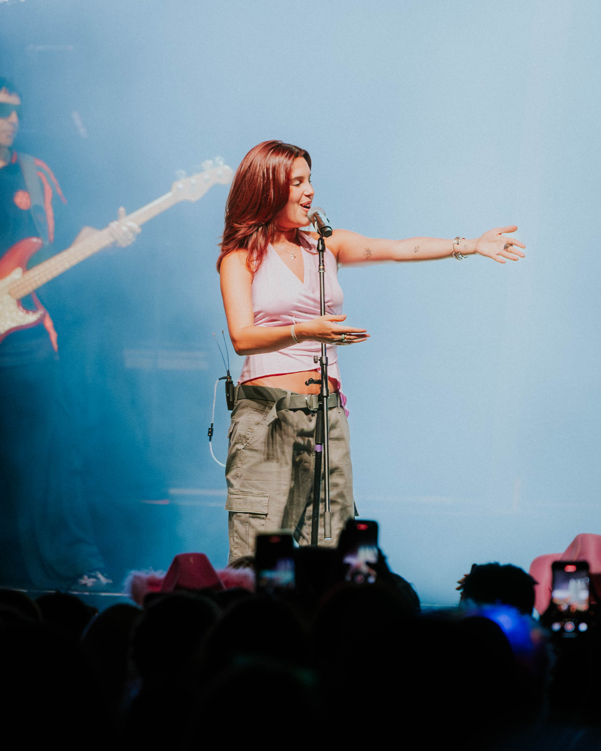 And then there was The Driver Era, who kicked off their set with a showy, dramatic hook that immediately captivated the audience’s attention. The band began their first song behind a backlit curtain, their shadowy outlines moving in perfect sync with the rhythm, creating an almost hypnotic silhouette dance. The crowd’s anticipation grew with every beat, the energy in the room steadily rising. When the curtain finally dropped halfway through the song, revealing the full band in all their dynamic glory, the venue erupted into cheers and applause—the excitement was palpable. It was a bold, theatrical gesture—an unmistakable signal of the high-energy, emotionally charged performance that would unfold throughout the night.